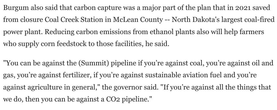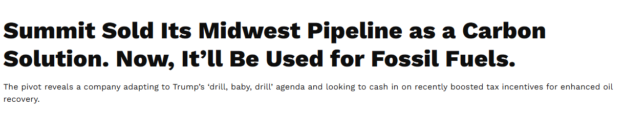 The Summit Saga started in 2022 when landowners and activists started realizing what was going on, and was originally sold as solely a “Carbon Sequestration” project to obtain federal 45Q tax credits: