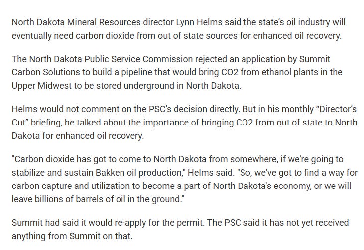 Over the long saga of the Summit Carbon Solutions CO2 pipeline fight, the narrative on what the pipeline would be used for has changed multiple times, which I’ve documented along the way.